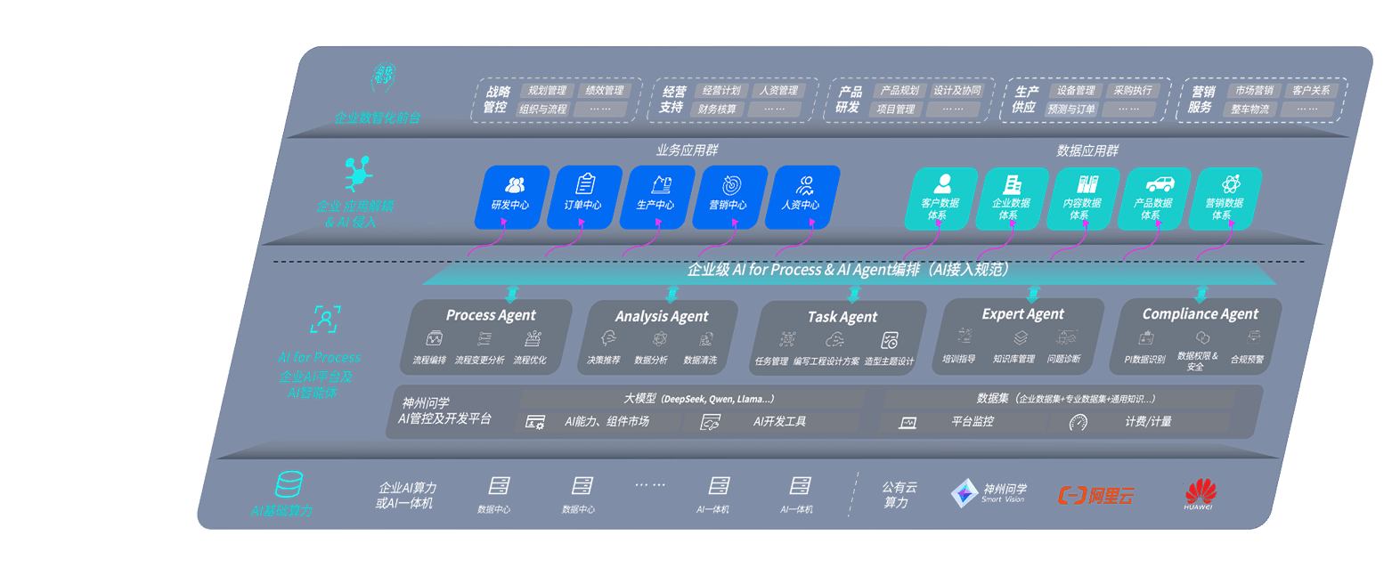君临国际问学智车解决方案是一套基于AI技术的汽车行业智能化系统,,覆盖从底层算力到顶层AI应用的全栈方案。。方案由算力层、、、、模型层和应用层组成:算力层,,,方案支持多种一体机配置,,,具备云端灵活部署、、、多云适配以及动态优化计算资源的能力;模型层,,,君临国际问学平台版提供了企业级AI应用一站式构建与管理平台,,,,支持基于后训练强化技术的汽车企业专属模型的训练、、评测和运营;应用层,,,君临国际问学DeepSeek版提供包括超级员工、、智能招采、、、、智能营销、、智能客服、、AI for BI等一系列解决方案,,,,可助力汽车行业实现数字化转型,,,,让管理更智能、、、、响应更敏捷。。