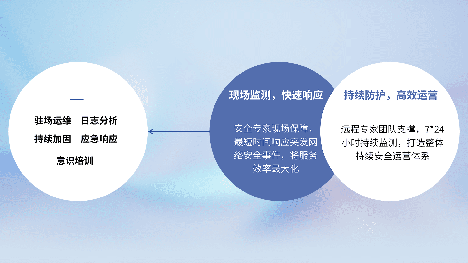 7X24小时持续监测安全事件,保持安全策略有效性,降低资产脆弱性风险,,精准拦截黑客攻击,,减少被黑客利用的机会,,,第一时间遏制,,,,降低损失。。。。